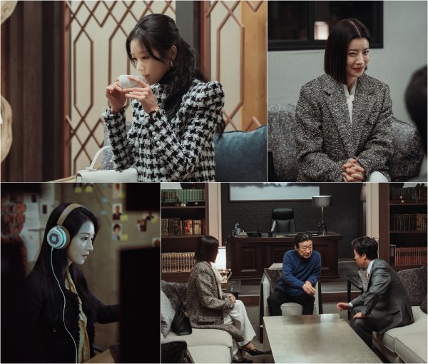 이어진 스틸 컷 속 라엘은 복수를 위한 비밀의 방에서 헤드셋을 끼고 무언가를 듣는다. 이는 라엘이 한판로 집에 설치한 도청기를 통해 여러 대화 내용을 듣는 모습. 누가 들을 새라 서로의 거리를 좁히며 진지하게 대화를 이어가는 한판로, 김정철(정해균 분) 모습과 소라의 만족스러운 미소가 시선을 끈다. 그리고 이들 사이에 어떤 이야기가 오간 것인지 집중하는 라엘. 소라에 이어 한판로 집까지 파고든 라엘의 행동을 주목해달라고 한다.