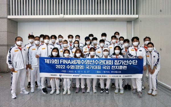 15일 2022 세계선수권대회 출전을 위해 헝가리 부다페스트로 출국한 수영대표팀 주장 김서영(28·경북도청)과 막내 문수아(14·상일여중2)는 태극마크의 무게를 강조했다.