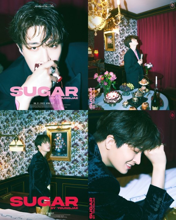 영재는 손으로 케이크를 쥔 채 카메라를 응시하며 몽환적이면서도 절제된 섹시미를, 편안하면서도 기분 좋은 미소로 청량함을 드러내는 것으로 이번 앨범 ‘SUGAR’의 콘셉트를 풀어냈다.