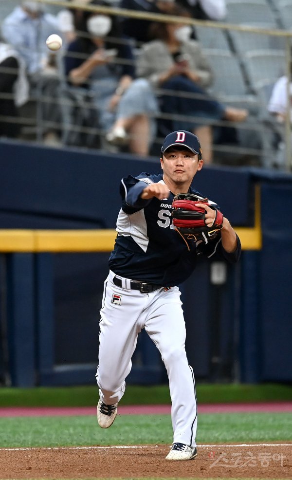 15일 서울 고척스카이돔에서 ‘2022 신한은행 MY CAR KBO리그’ 두산 베어스와 키움 히어로즈 경기가 열렸다. 5회말 무사 키움 3루수 앞 땅볼 때 두산 박계범이 송구 실책을 범하고 있다.
