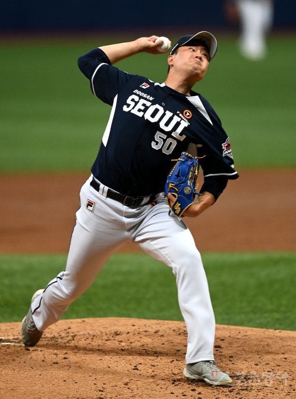 15일 서울 고척스카이돔에서 ‘2022 신한은행 MY CAR KBO리그’ 두산 베어스와 키움 히어로즈 경기가 열렸다. 선발 투수로 등판한 두산 이영하가 역투하고 있다.