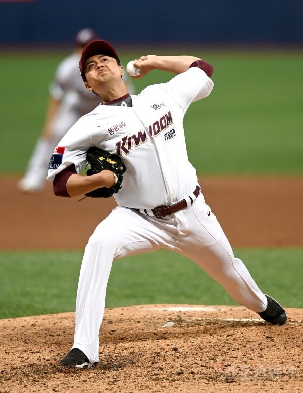 15일 서울 고척스카이돔에서 ‘2022 신한은행 MY CAR KBO리그’ 두산 베어스와 키움 히어로즈 경기가 열렸다. 7회초 교체 등판한 키움 이영준이 역투하고 있다.