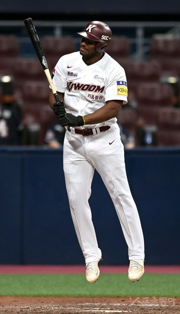 15일 서울 고척스카이돔에서 ‘2022 신한은행 MY CAR KBO리그’ 두산 베어스와 키움 히어로즈 경기가 열렸다. 8회말 1사 키움 푸이그가 외야 뜬공을 친 후 아쉬워하고 있다.