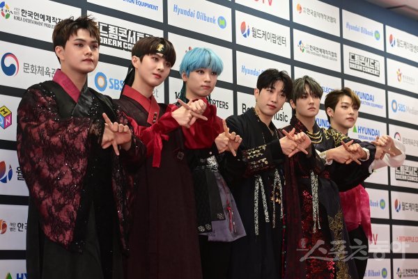 그룹 킹덤이 18일 서울 잠실올림픽주경기장에서 열린 ‘28회 드림콘서트’ 포토월에서 포즈를 취하고 있다.
