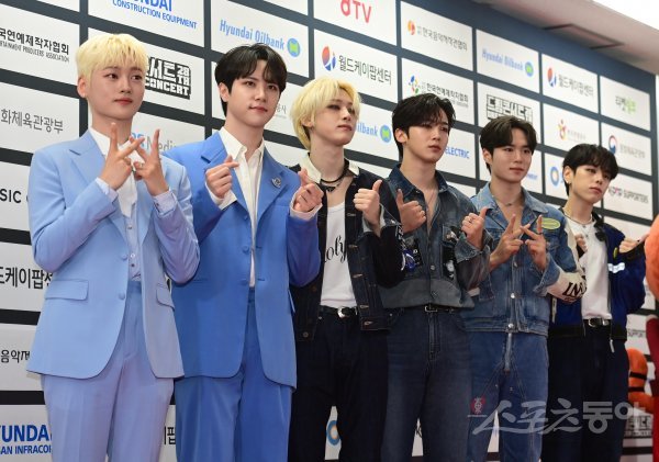 그룹 위아이가 18일 서울 잠실올림픽주경기장에서 열린 ‘28회 드림콘서트’ 포토월에서 포즈를 취하고 있다.