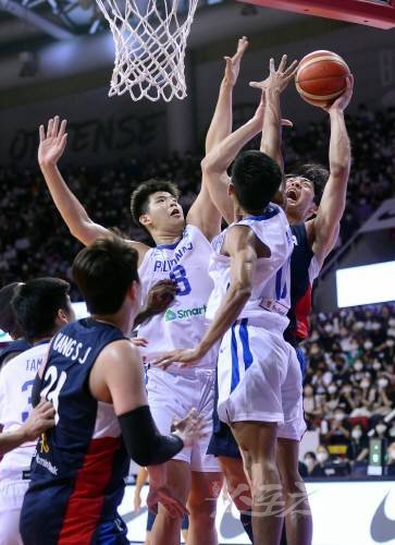 18일 안양실내체육관에서 열린 남자농구 국가대표팀과 필리핀 남자농구 국가대표팀 평가전에서 한국 여준석이 필리핀의 수비를 뚫고 골밑 슛을 하고 있다.