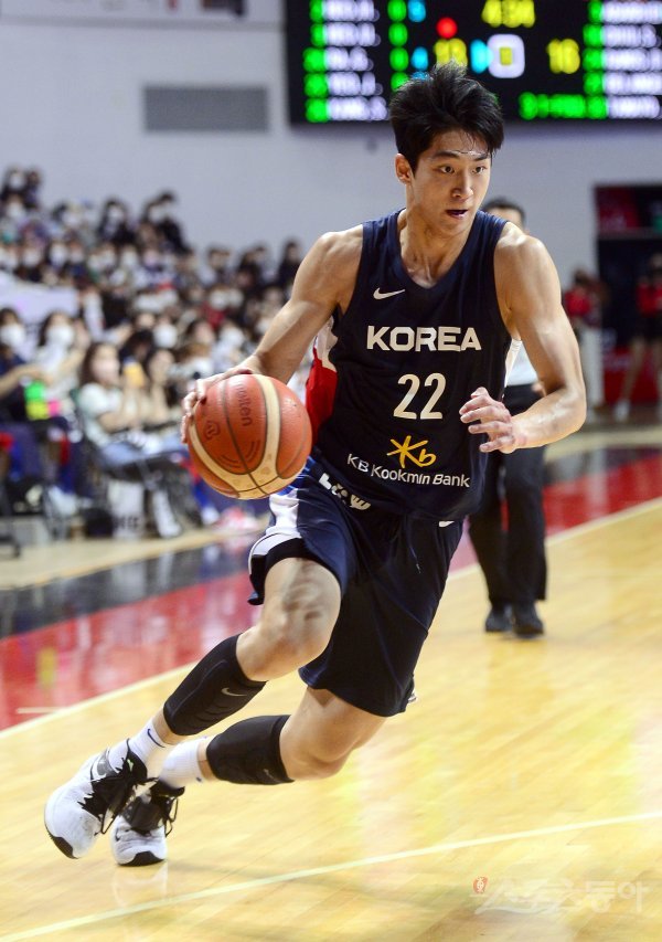 18일 안양실내체육관에서 열린 남자농구 국가대표팀과 필리핀 남자농구 국가대표팀 평가전에서 한국 여준석이 필리핀의 수비를 뚫고 골밑을 공격하고 있다.