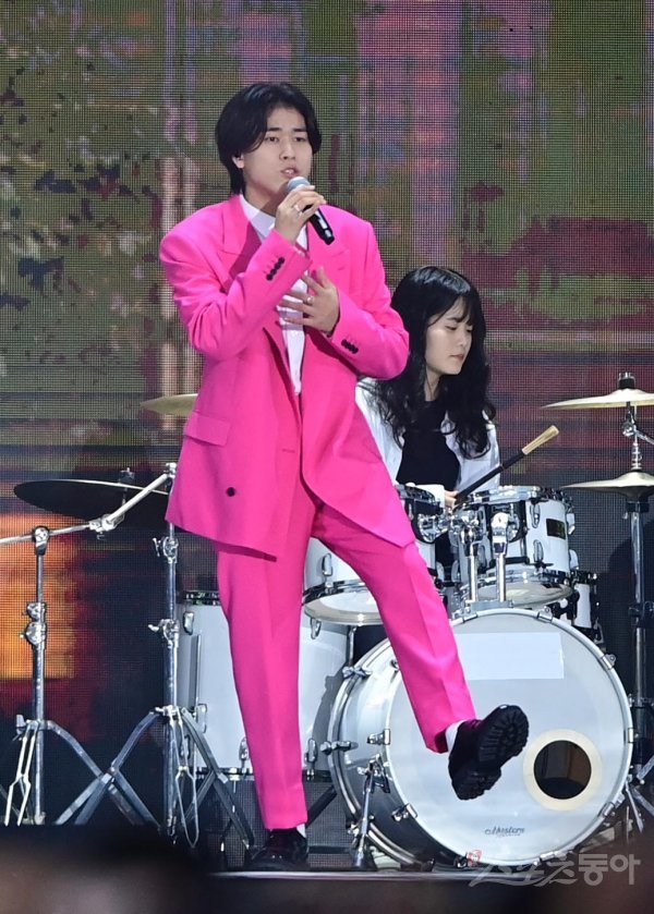 가수 이무진이 18일 서울 잠실올림픽주경기장에서 열린 ‘28회 드림콘서트’에서 공연을 펼치고 있다.