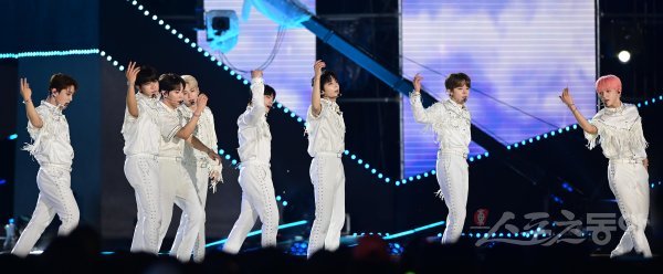 그룹 골든차일드가 18일 서울 잠실올림픽주경기장에서 열린 ‘28회 드림콘서트’에서 공연을 펼치고 있다.