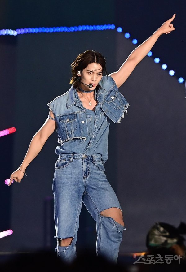 그룹 CIX 배진영이 18일 서울 잠실올림픽주경기장에서 열린 ‘28회 드림콘서트’에서 공연을 펼치고 있다.
