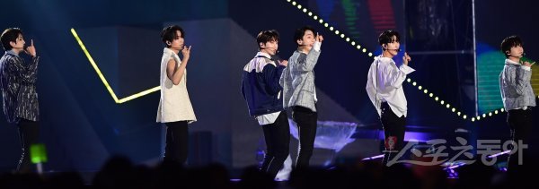 그룹 펜타곤이 18일 서울 잠실올림픽주경기장에서 열린 ‘28회 드림콘서트’에서 공연을 펼치고 있다.