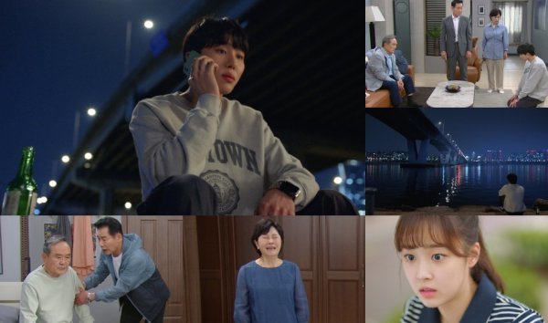 결국 수재가 부담감을 이기지 못한 걸까. 위 영상에서 좌절한 수재가 늦은 밤 한강에서 목격돼 긴장감을 고조시킨다. 이가네 어른들에게 둘러싸여 유나와의 계약 결혼을 모두 자신의 책임으로 돌리며 오열하던 수재가 한강을 바라보며 유나에게 전화를 걸어 “널 사랑하게 됐다. 넌 나 같은 쓰레기 옆에 있으면 안 된다”고 고백했다. 그 이후 나쁜 소식이 전해졌는지 경철은 다리까지 휘청이고, 경애는 “잘못되면 어떡해”라며 눈물을 쏟아냈다. 친구에게 사기를 당하고, 계약 결혼까지 발각되는 등 수난을 겪고 있는 수재에게 과연 무슨 일이 벌어진 것인지, 불길한 예감이 상승한다.