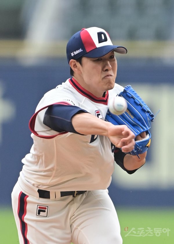 19일 서울 잠실야구장에서 열린 ‘2022 신한은행 SOL KBO리그’ 두산 베어스와 KT 위즈의 경기에서 선발 투수로 마운드에 오른 두산 최원준이 역투하고 있다.