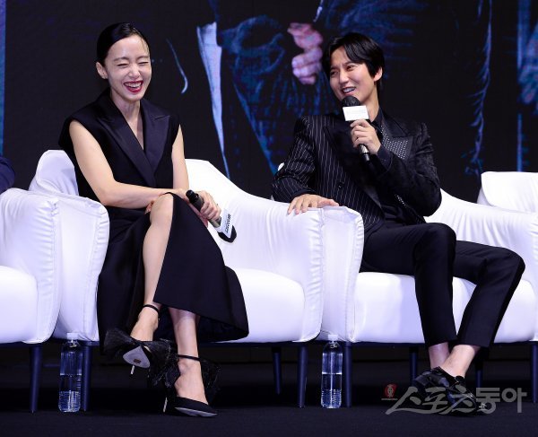 20일 서울 소공동 웨스틴조선에서 열린 영화 ‘비상선언’ 제작보고회에 참석한 김남길이 전도연과의 촬영 에피소드를 밝히고 있다. ‘비상선언’은 사상 초유의 항공테러로 무조건적 착륙을 선포한 비행기를 두고 벌어지는 리얼리티 항공재난 영화이다.