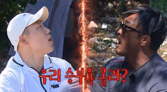추성훈과 모태범이 치열한 허벅지 씨름 대결을 펼친다.