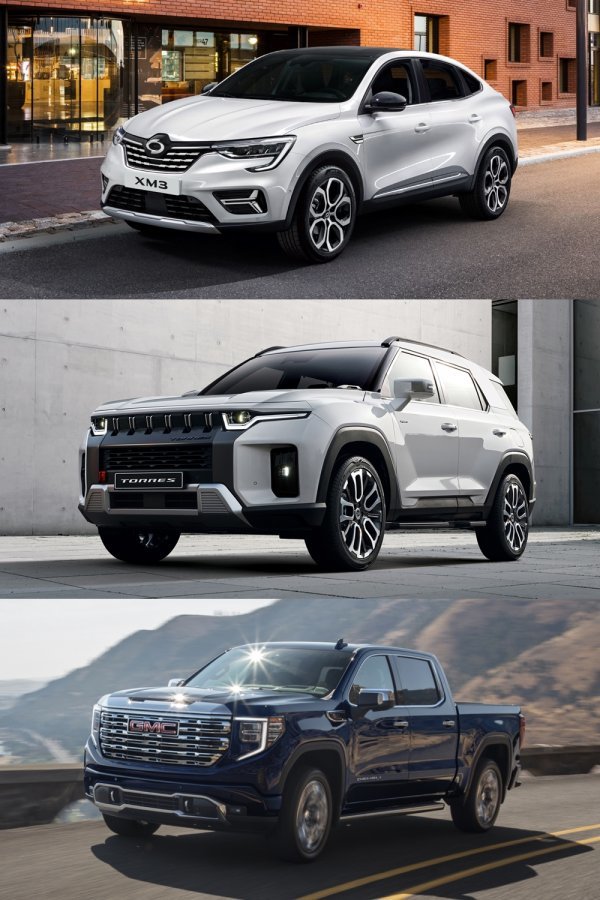 르노코리아, 쌍용차, 한국지엠이 친환경차 및 신규 브랜드 도입을 통해 시장 점유율 확대를 노린다. 하반기 도입을 앞둔 르노삼성 XM3 하이브리드, 쌍용차 토레스, GMC 시에라(위부터).