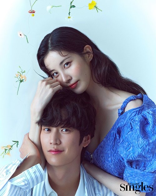 파란색 톤으로 의상을 맞춰 입고 등장한 서현과 나인우는 드라마 속 빛나는 호흡을 그대로 재현하며 싱그럽고 청량한 분위기를 자아냈다. 따로 또 함께하며 눈부신 미모를 과시한 덕분에 촬영장 스태프들은 ‘비주얼도 케미도 완벽한 워너비 커플’이라며 칭찬을 했다.