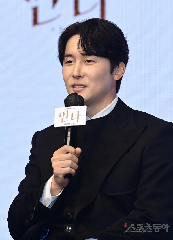 배우 김준한이 21일 서울 영등포구 여의도동 콘래드서울에서 열린 쿠팡플레이 ‘안나’ 제작발표회에서 인사말을 하고 있다.