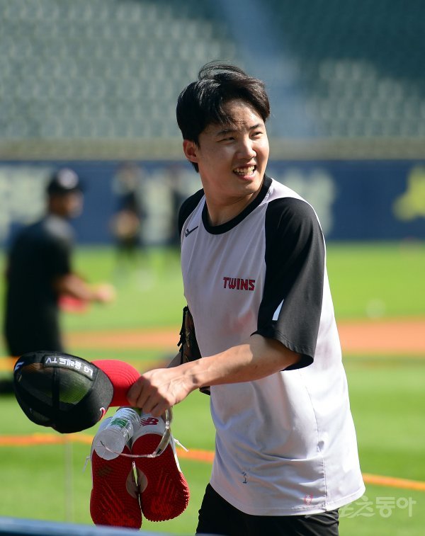 21일 서울 잠실야구장에서 ‘2022 신한은행 MY CAR KBO리그’ 한화 이글스와 LG 트윈스 경기가 열린다. LG 임찬규가 훈련을 마치고 더그아웃으로 들어가고 있다.