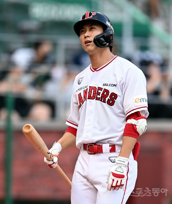 21일 인천 SSG 랜더스필드에서 ‘2022 신한은행 SOL KBO리그’ SSG 랜더스와 두산 베어스의 경기가 열렸다. 2회말 1사 2, 3루에서 SSG 안상현이 삼진 아웃으로 물러난 뒤 아쉬워하고 있다.