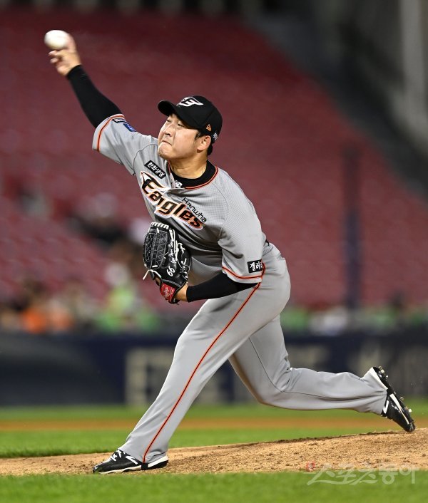 21일 서울 잠실야구장에서 ‘2022 신한은행 MY CAR KBO리그’ 한화 이글스와 LG 트윈스 경기가 열렸다. 교체 등판한 한화 주현상이 역투하고 있다.
