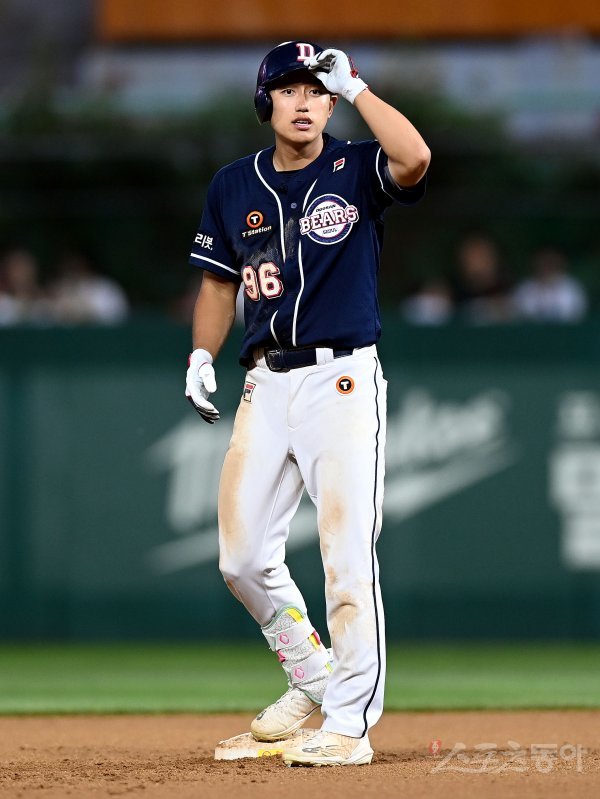 21일 인천 SSG 랜더스필드에서 ‘2022 신한은행 SOL KBO리그’ SSG 랜더스와 두산 베어스의 경기가 열렸다. 6회초 1사 1, 2루에서 두산 양찬열이 1타점 2루타를 날린 후 환호하고 있다.