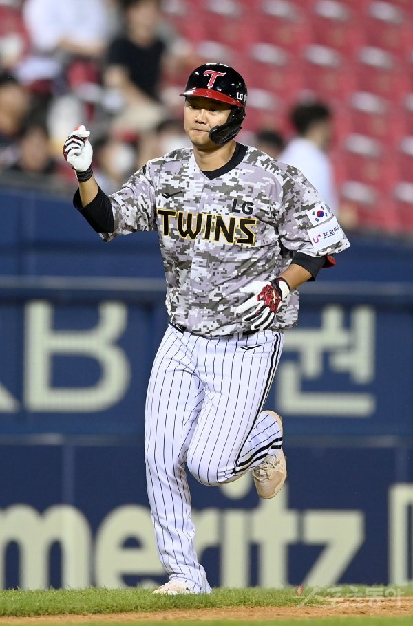 21일 서울 잠실야구장에서 ‘2022 신한은행 MY CAR KBO리그’ 한화 이글스와 LG 트윈스 경기가 열렸다. 5회말 2사 1,2루 LG 손호영이 좌월 스리런 홈런을 날리고 그라운드를 돌고 있다. 잠실 | 김종원 기자 won@donga.com