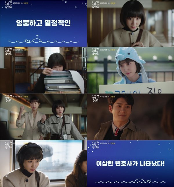 제작진이 공개한 예고편은 신입 변호사 우영우의 만만치 않은 대형 로펌 입성기를 담는다. “제 이름은 똑바로 읽어도 거꾸로 읽어도 우영우입니다. 기러기, 토마토, 스위스, 인도인, 별똥별, 우영우... 역삼역?”이라며 씩씩하게 자기소개를 하는 우영우. 듣도 보도 못한 엉뚱하고 신박한 첫인사에 “되게 재밌어요”라며 정색하는 시니어 변호사 정명석의 모습이 웃음을 유발한다.