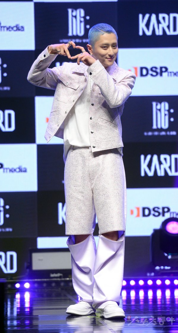 혼성 그룹 KARD(카드) 제이셉이 22일 서울 서대문구 연세대 백주년기념관에서 진행된 다섯 번째 미니앨범 ‘Re:’ 발매 쇼케이스에서 포토타임을 갖고 있다.