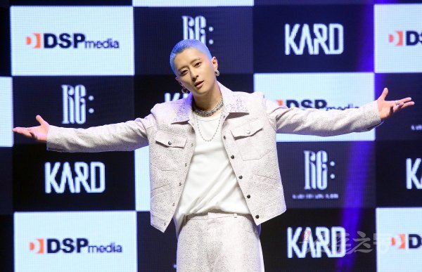 혼성 그룹 KARD(카드) 제이셉이 22일 서울 서대문구 연세대 백주년기념관에서 진행된 다섯 번째 미니앨범 ‘Re:’ 발매 쇼케이스에서 포토타임을 갖고 있다.