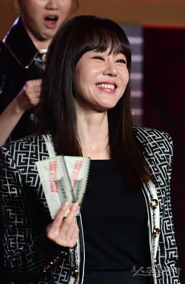배우 김윤진이 22일 서울 강남구 코엑스 그랜드볼룸에서 열린 넷플릭스 새 오리지널 시리즈 ‘종이의 집: 공동경제구역’ 제작발표회에서 밝게 미소 짓고 있다. 주현희 기자 tehth1147@donga.com