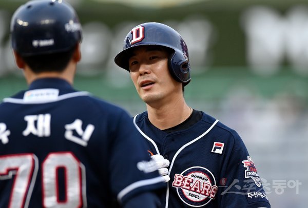 22일 인천 SSG 랜더스필드에서 ‘2022 신한은행 SOL KBO리그’ SSG 랜더스와 두산 베어스의 경기가 열렸다. 3회초 무사에서 두산 김재호가 안타를 날린 후 코치의 환영을 받고 있다. 이날 안타를 날린 김재호는 1100안타를 기록했다.