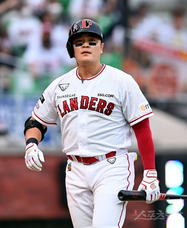 22일 인천 SSG 랜더스필드에서 ‘2022 신한은행 SOL KBO리그’ SSG 랜더스와 두산 베어스의 경기가 열렸다. 3회말 1사에서 SSG 추신수가 삼진 아웃으로 물러나고 있다.