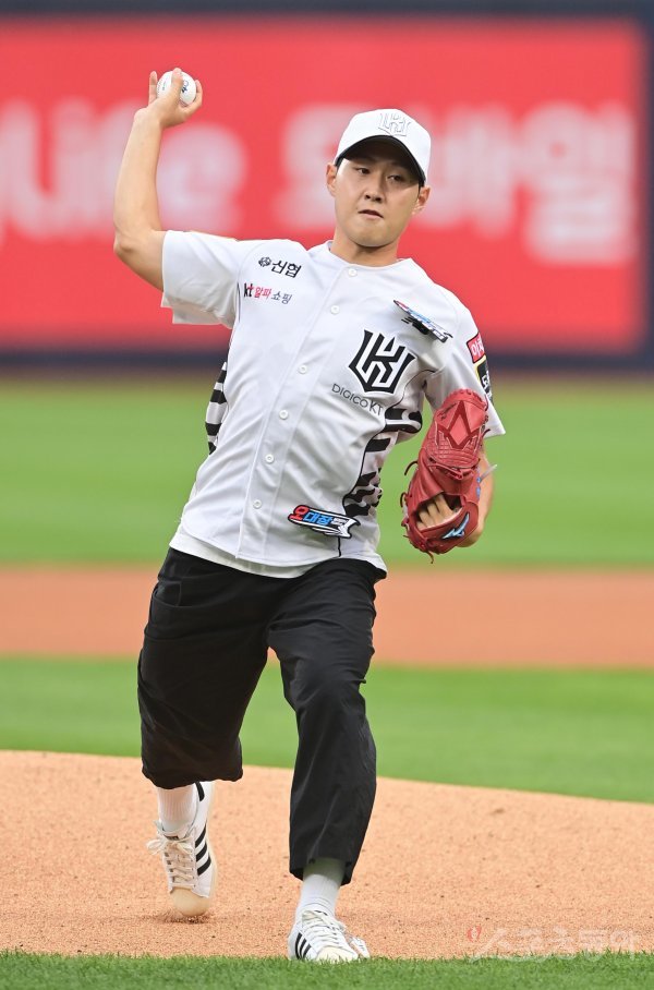22일 경기도 수원KT위즈파크에서 열린 ‘2022 신한은행 SOL KBO리그’ KT 위즈와 NC 다이노스의 경기에 앞서 마요르카 이강인이 시구를 하고 있다.