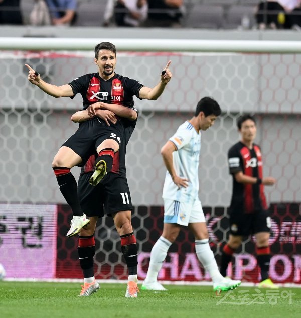 22일 서울월드컵경기장에서 열린 프로축구 ‘하나원큐 K리그1 2022’ FC서울과 울산현대 경기에서 전반전 서울 팔로세비치가 선제골을 성공시킨 후 환호하고 있다.