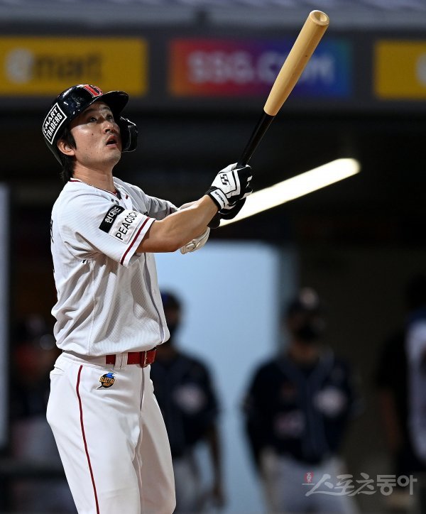 22일 인천 SSG 랜더스필드에서 ‘2022 신한은행 SOL KBO리그’ SSG 랜더스와 두산 베어스의 경기가 열렸다. 연장 10회말 1사 만루에서 SSG 김성현이 끝내기 희생플라이를 날리고 있다.