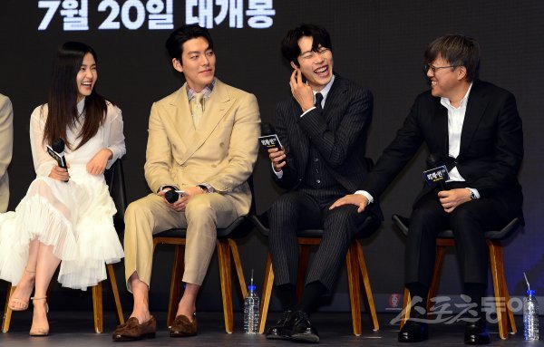 23일 오전 서울 영등포구 여의도 콘래드호텔에서 열린 영화 ‘외계+인 1부’ 제작보고회에 참석한 출연배우들이 소감을 밝히고 있다.영화‘외계+인’ 1부는 고려 말 소문 속의 신검을 차지하려는 도사들과 2022년 인간의 몸 속에 수감된 외계인 죄수를 쫓는 이들 사이에 시간의 문이 열리며 펼쳐지는 이야기를 그린 영화이다.