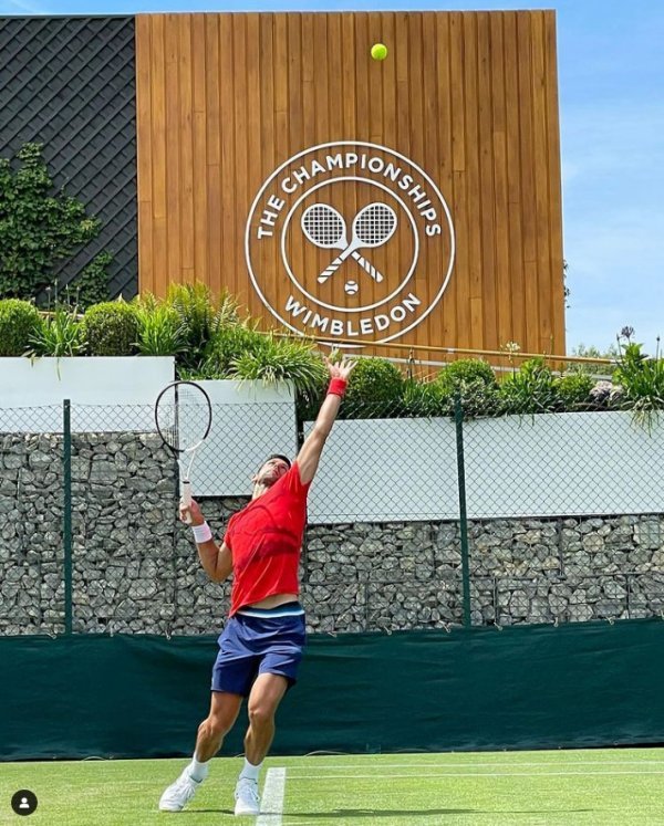 노박 조코비치가 윔블던에서 훈련하는 모습을 인스타그램에 게재했다.