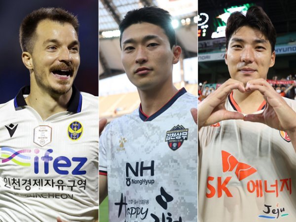 인천 무고사, 김천 조규성, 제주 주민규(왼쪽부터). 사진제공 | 한국프로축구연맹