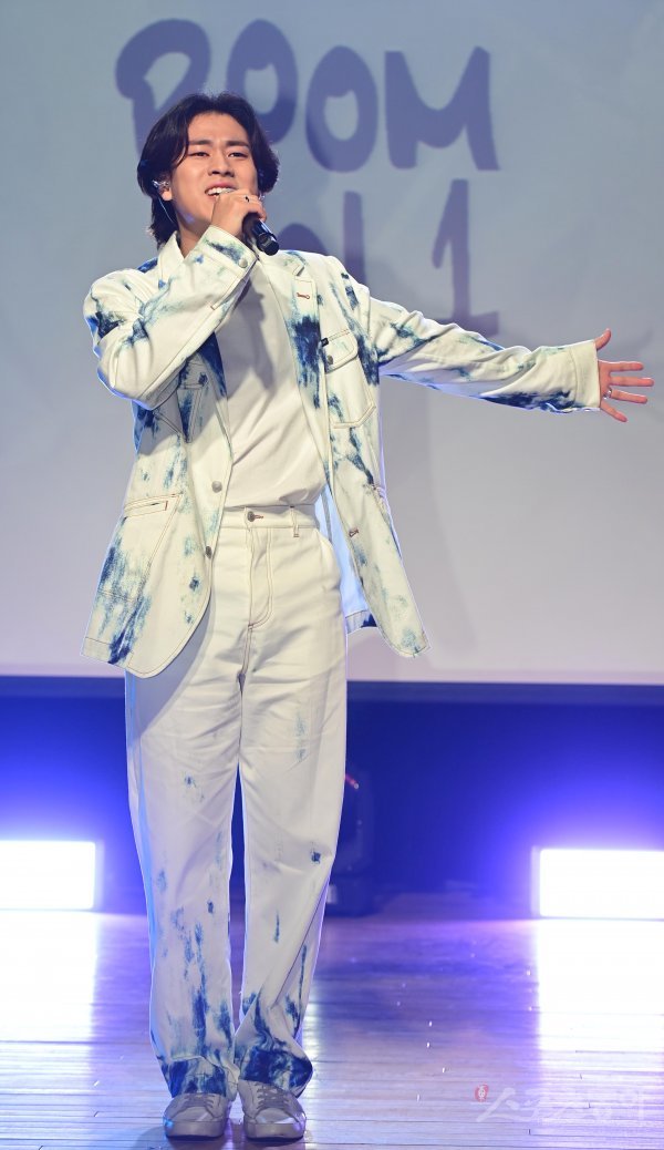가수 이무진이 23일 서울 강남구 청담동 일지아트홀에서 열린 첫 번째 미니앨범 ‘Room Vol.1‘ 발매 기념 쇼케이스에서 타이틀곡 ’참고사항‘을 열창하고 있다.