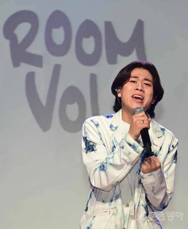 가수 이무진이 23일 서울 강남구 청담동 일지아트홀에서 열린 첫 번째 미니앨범 ‘Room Vol.1‘ 발매 기념 쇼케이스에서 타이틀곡 ’참고사항‘을 열창하고 있다.