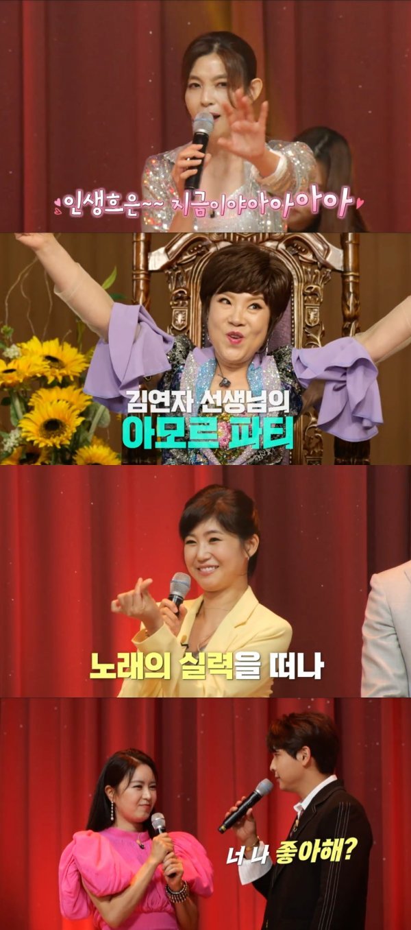 가장 먼저 무대 위로 오른 건 \'찐이야\'를 선곡한 김지원이었다. 이어 강수정이 \'노란 샤쓰의 사나이\'를 불러 기대 이상 최선의 퍼포먼스를 선보였지만, 아쉽게도 결과는 최저점이었다. 김연자는 "얼굴도 예쁘고 말씀도 잘하시는데 (신이) 노래 실력만 안 주셨지 싶다"라고 평가해 폭소를 안겼다. 이어진 \'어머나\' 무대에서는 김수민이 막내의 패기를 내세운 상큼한 보컬로 박수 갈채를 이끌었다.