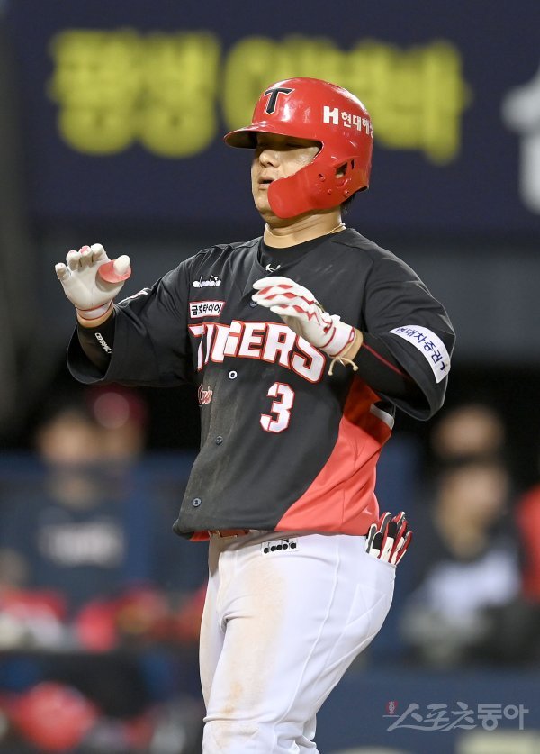 26일 서울 잠실야구장에서 ‘2022 신한은행 MY CAR KBO리그’ KIA 타이거즈와 두산 베어스 경기가 열렸다. 9회초 1사 1,3루 KIA 김선빈이 좌월 스리런 홈런을 날리고 그라운드를 돌암 홈인하고 있다.