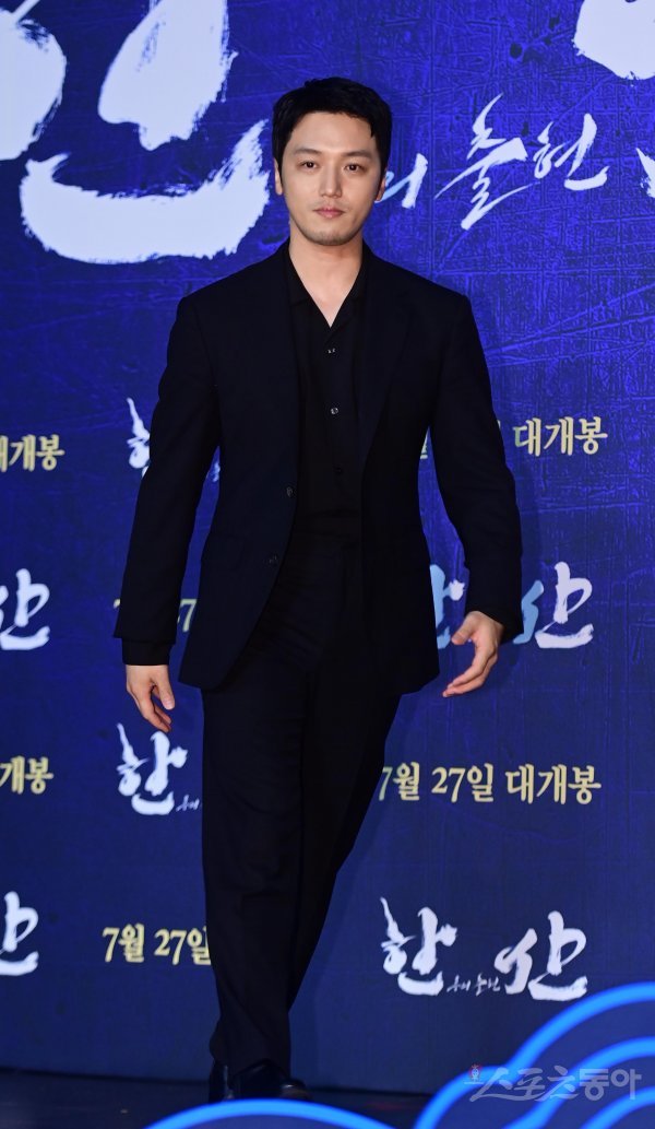 배우 변요한이 28일 서울 광진구 자양동 롯데시네마 건대입구점에서 열린 영화 ‘한산: 용의 출현’ 제작보고회에서 포즈를 취하고 있다.