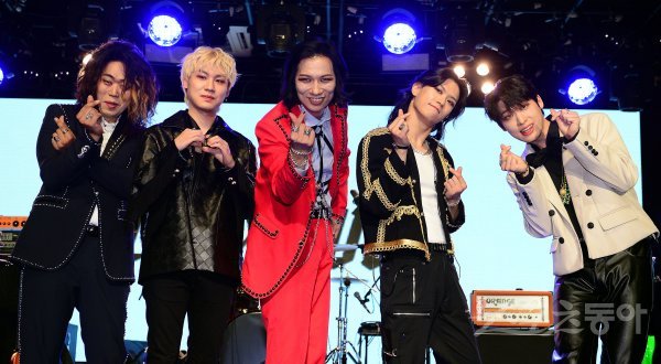 크랙실버(CraXilver) 첫 번째 미니 앨범 ‘Make A Dash’ 발매 기념 쇼케이스가 28일 오후 서울 마포구 서교동 홍대 롤링홀에서 열렸다. 윌리K, Danny Lee, 빈센트, Cyan, 오은철이 카메라를 향해 포즈를 취하고 있다.