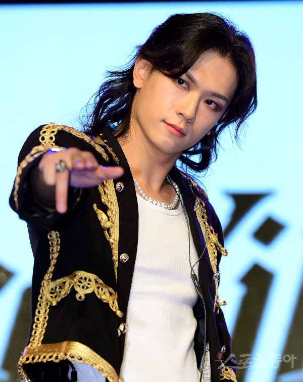 크랙실버(CraXilver) 첫 번째 미니 앨범 ‘Make A Dash’ 발매 기념 쇼케이스가 28일 오후 서울 마포구 서교동 홍대 롤링홀에서 열렸다. 크랙실버 Cyan가 카메라를 향해 포즈를 취하고 있다.