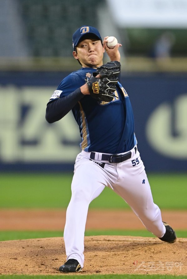 28일 서울 잠실야구장에서 열린 ‘2022 신한은행 SOL KBO리그’ LG 트윈스와 NC 다이노스의 경기에서 선발 투수로 마운드에 오른 NC 구창모가 역투하고 있다.