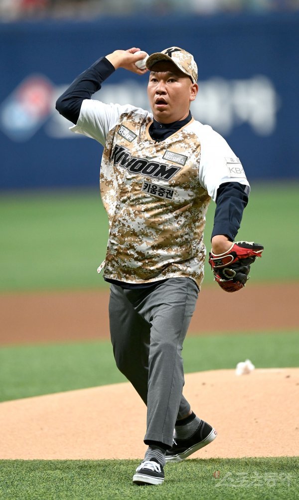 28일 서울 고척스카이돔에서 ‘2022 신한은행 MY CAR KBO리그’ KIA 타이거즈와 키움 히어로즈 경기가 열렸다. 경기 전 배우 박효준이 시구를 하고 있다.
