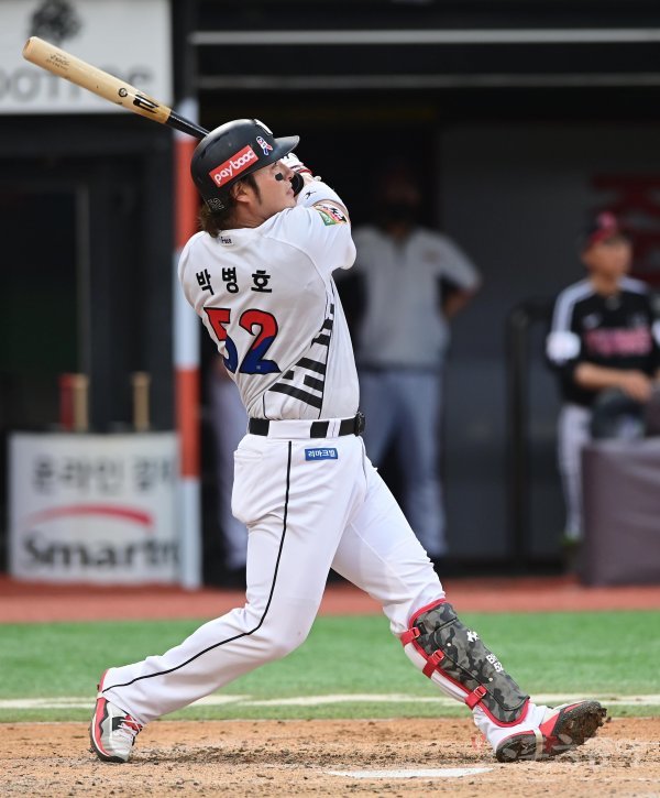 1회초 1사 1·2루서 볼넷을 얻어 출루하는 데 만족한 박병호는 2번째 타석부터 본격적으로 배트를 돌렸다. 0-0으로 맞선 3회초 1사 후 볼카운트 0B-1S서 삼성 선발 백정현의 커터(시속 131㎞)가 낮게 떨어지자, 이를 힘차게 걷어 올려 왼쪽 담장 밖으로 날려 보냈다. 시즌 23호 아치는 그의 개인통산 350번째 홈런이었다. KIA 타이거즈 최형우(349개)를 통산 홈런 6위로 밀어내며 단독 5위로 올라섰고, 4위 양준혁(은퇴·351개)에는 1개차로 다가섰다. 이 부문 1위는 ‘국민타자’ 이승엽(은퇴)으로, 총 467홈런을 때려냈다.