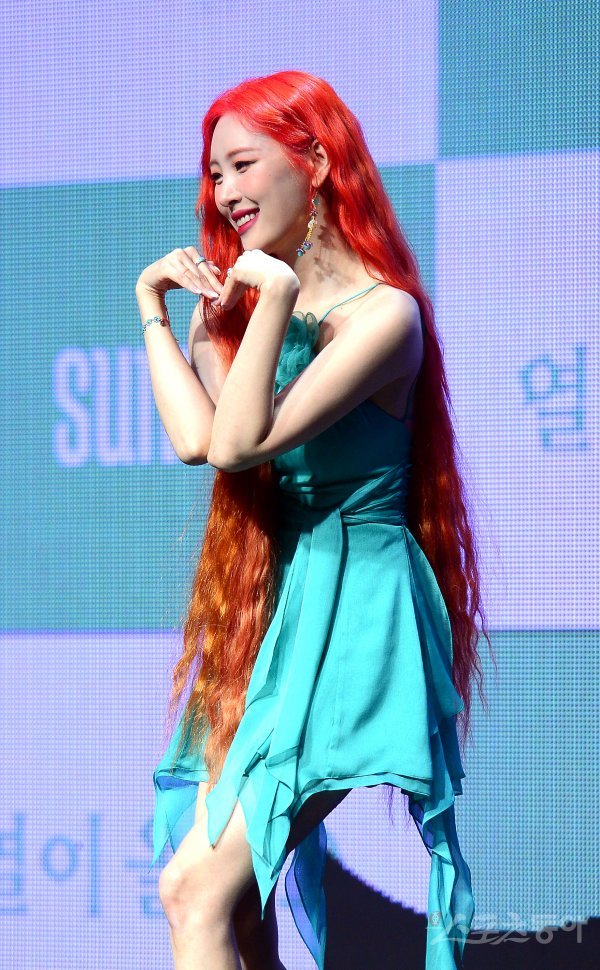 가수 선미가 29일 서울 마포구 신한play스퀘어에서 진행된 디지털 싱글 ‘열이올라요(Heart Burn)’ 발매 쇼케이스에서 포토타임을 갖고 있다.